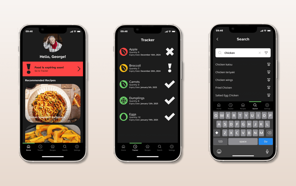 This was a project for Pacific Design Academy’s UX/UI Design class, where I designed a mobile app concept to track food expiry dates, recommend recipes, and teach how to prepare them.